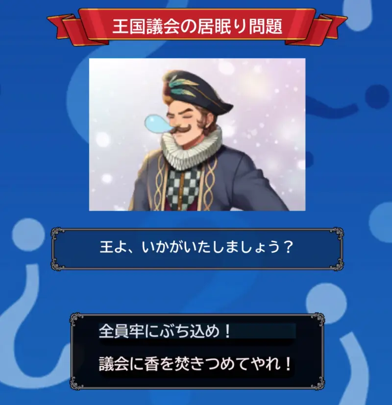 プレイヤーは物語を読み進め、2択から王国の運命を選んでいきます。待ち受ける運命は名君かそれとも暴君か……、現実の政治思想はゼロなんで安心です!