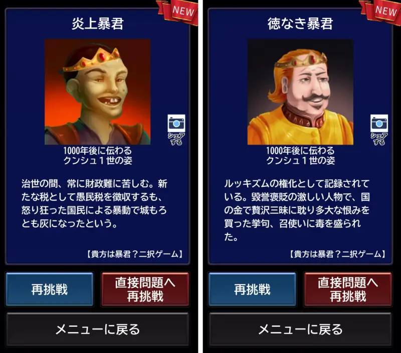 以上『貴方は暴君?二択ゲーム』のプレイ評価・レビューでした!