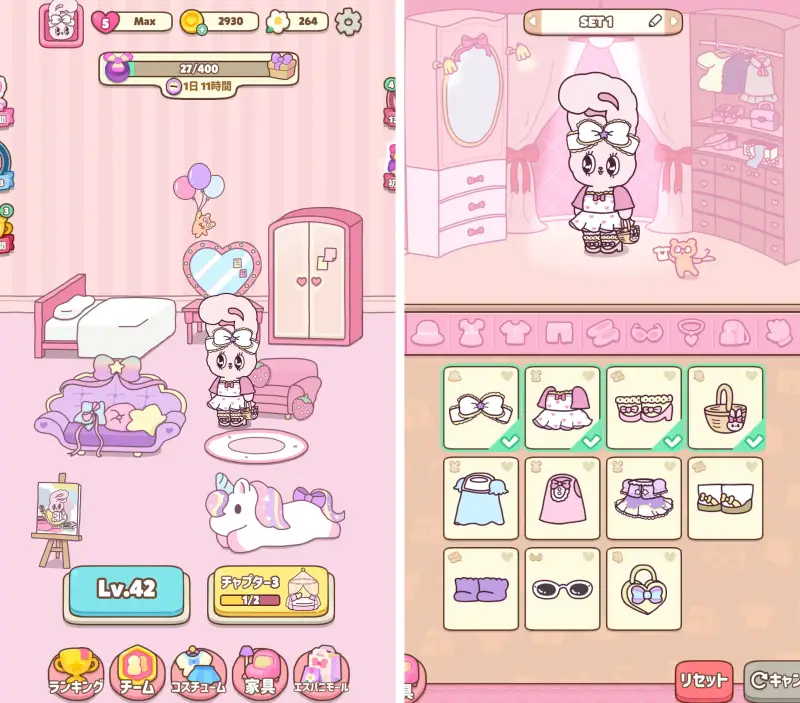 『エスターバニーポップガール』で一番おすすめしたいのは、可愛らしい家具とコスチュームシステムです。