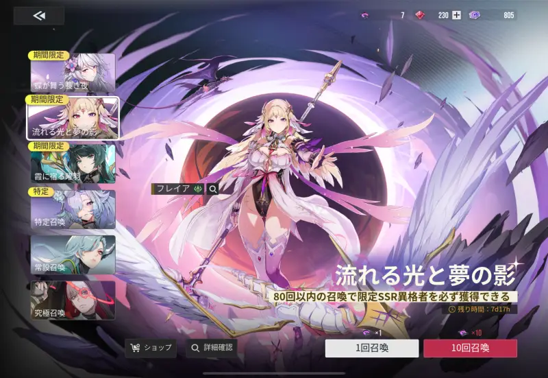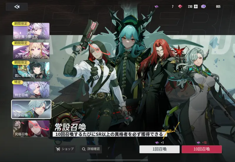通常のガチャには「原相」「究極」の2種類存在し、ざっくり言えば究極のほうが価値が高いです。他のスマホゲームで言えば基本属性が原相で、光&闇のような恒定&破序と呼ばれるキャラクターが究極枠になります。