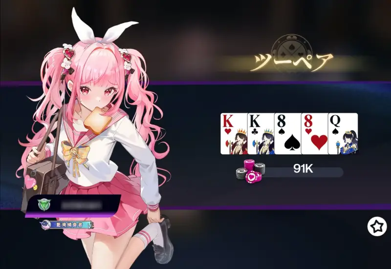 キャラ数は少ないけど、かわいさは十分のポーカーゲームだよ。キャラが刺さったら遊ぶべき✨️