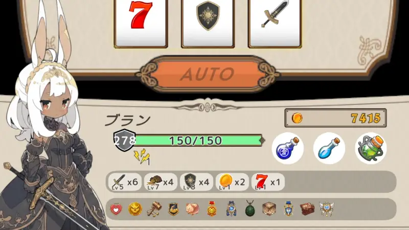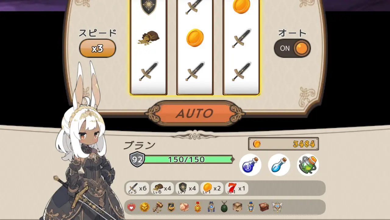 戦闘はスロットを回しながら戦うターン制バトルゲームです。