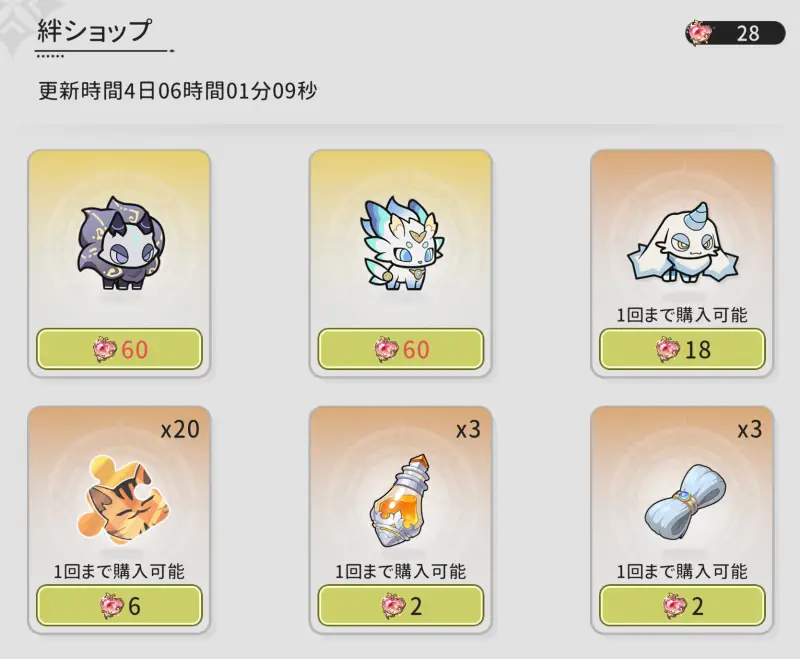 他のアイテムには交換しないほうがいいよ。絆の結晶は幻獣だけを交換するべき!