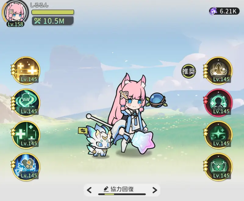 ![]() | つよつよ廃課金の火力を上げる秘策スキル。強いんだけど、無課金だと回復枠を優先して埋もれがち。戦力に余裕があるならダンジョン、普段使いなら聖獣の試練の補助にも良い |